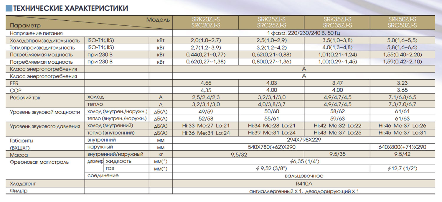 SRK25ZJ-S / SRC25ZJ-S работающий с применением технологии DC-inverter, имеет ряд значительных преимуществ в сравнении с системой, работающей с постоянной скоростью. Преимущества заключаются в быстром охлаждении или нагреве помещения и более четком поддержании заданной температуры, после этого скорость компрессора замедляется и система работает только на поддержание заданных параметров, поддерживая комфортные условия и экономя электроэнергию. Таким образом достигаются более высокие показатели производительности и более низкие шумовые характеристики.